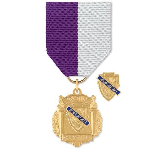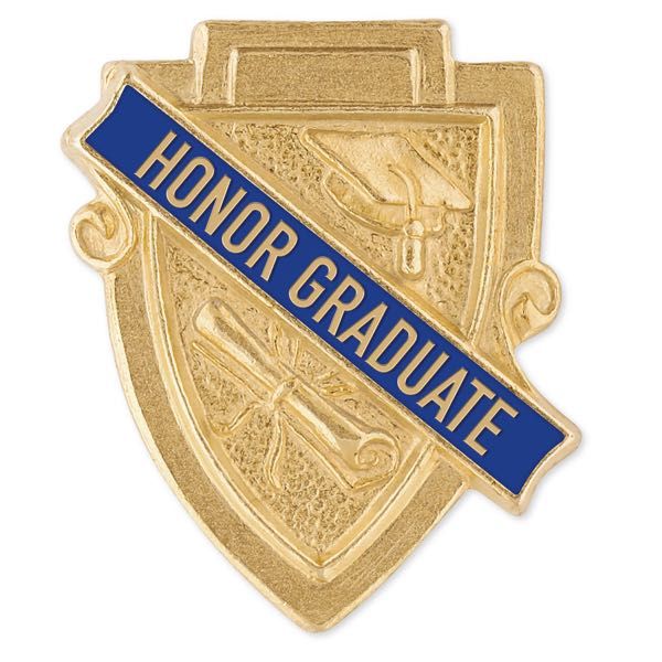 A special recognition for Top Graduates. A made to order item that requires extended production time. Standard configuration is our rich goldtone finish with contrasting blue enamel center. Optional silvertone and bronzetone finishes are available for an additional charge of 75ยข per item and require extended production time. Show your school colors with pride! Standard attachment is a ribbon drape in the color of your choice. If ribbon color is not specified, red, white and blue ribbon drape will be provided. Optional attachments are available to replace the standard ribbon drape for an additional charge. An Award Emblem original and exclusive item. Made in America.