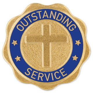 Item is in stock and ready for immediate delivery when ordered in our standard rich goldtone finish with contrasting blue enamel. Optional silvertone and bronzetone finishes are available for an additional charge of 75¢ per item and require extended production time. Attaches with a grip back and 5/16" tac post. Includes a premium presentation box at no additional charge. An Award Emblem original and exclusive item. Made in America.